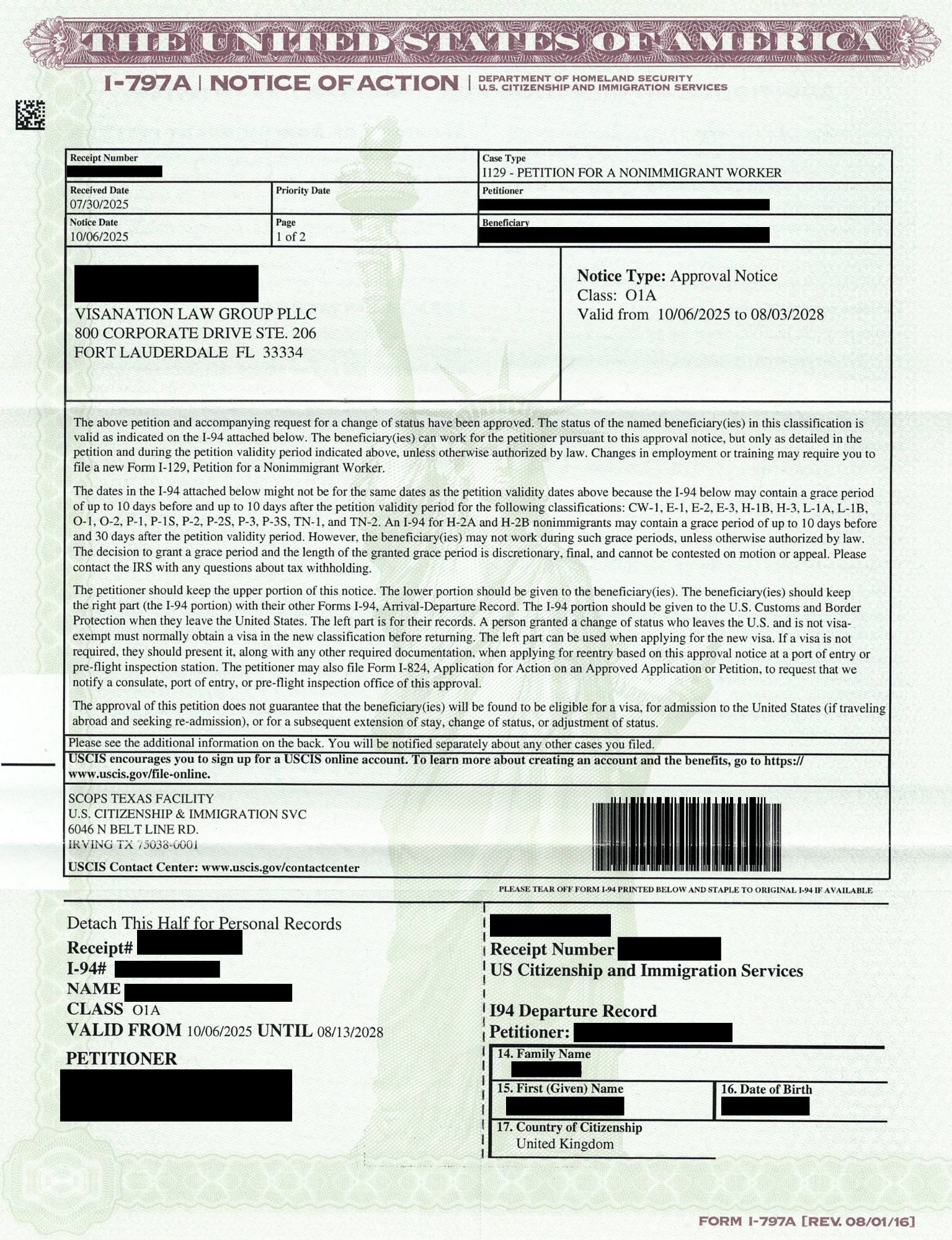 Our team developed a comprehensive petition strategy before submitting the I-129, centered on proving the client’s “extraordinary ability” by satisfying multiple regulatory criteria with robust evidence and recommendation letters: